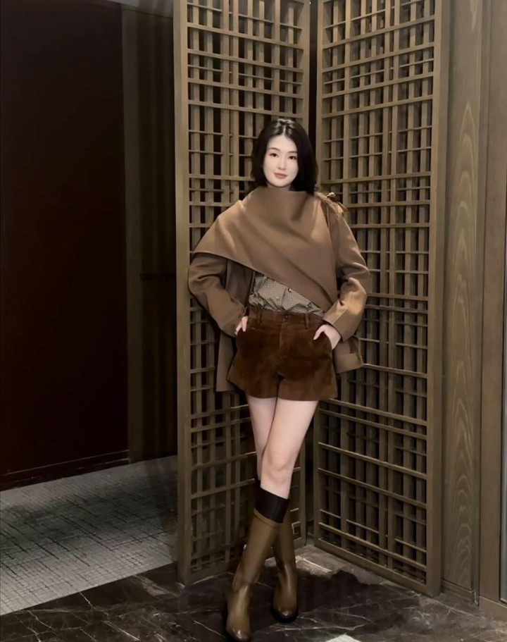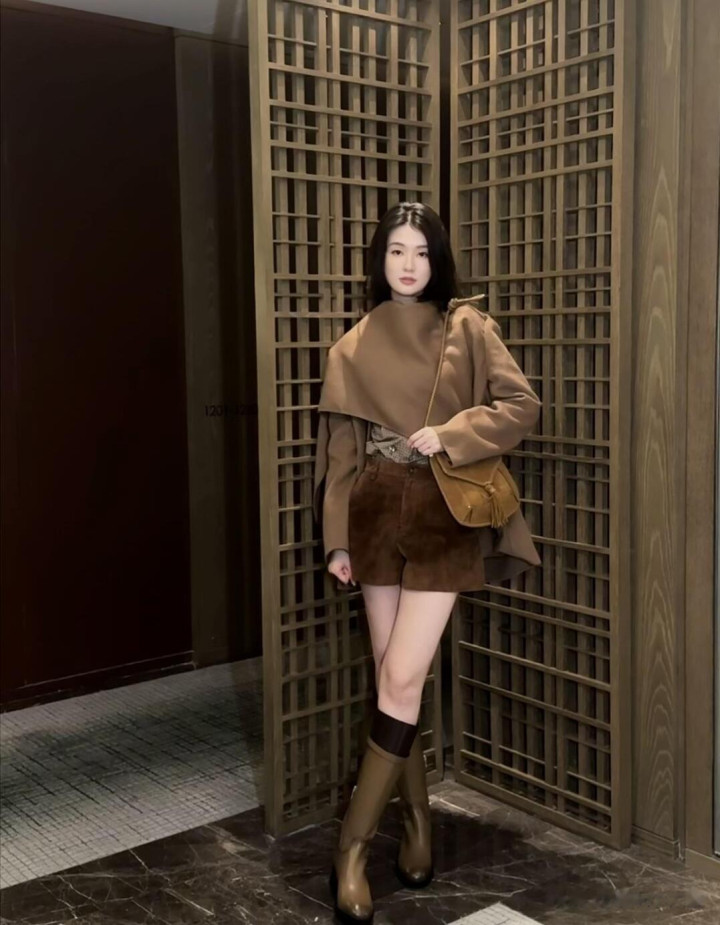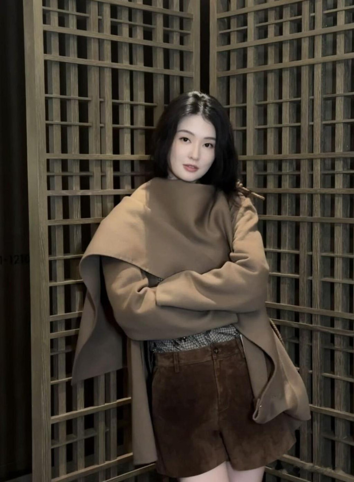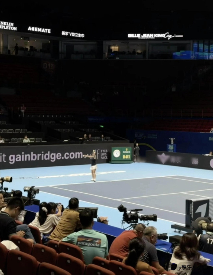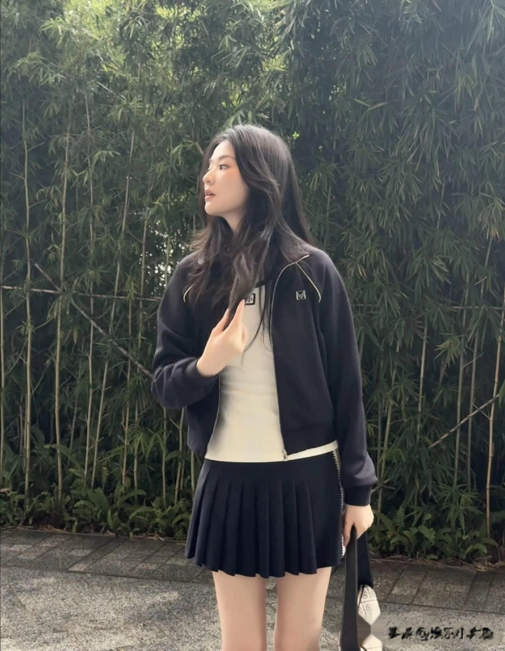 > 乔欣去看网球比赛了, 穿休闲外套搭配百褶裙, 网友: 有点认不出了